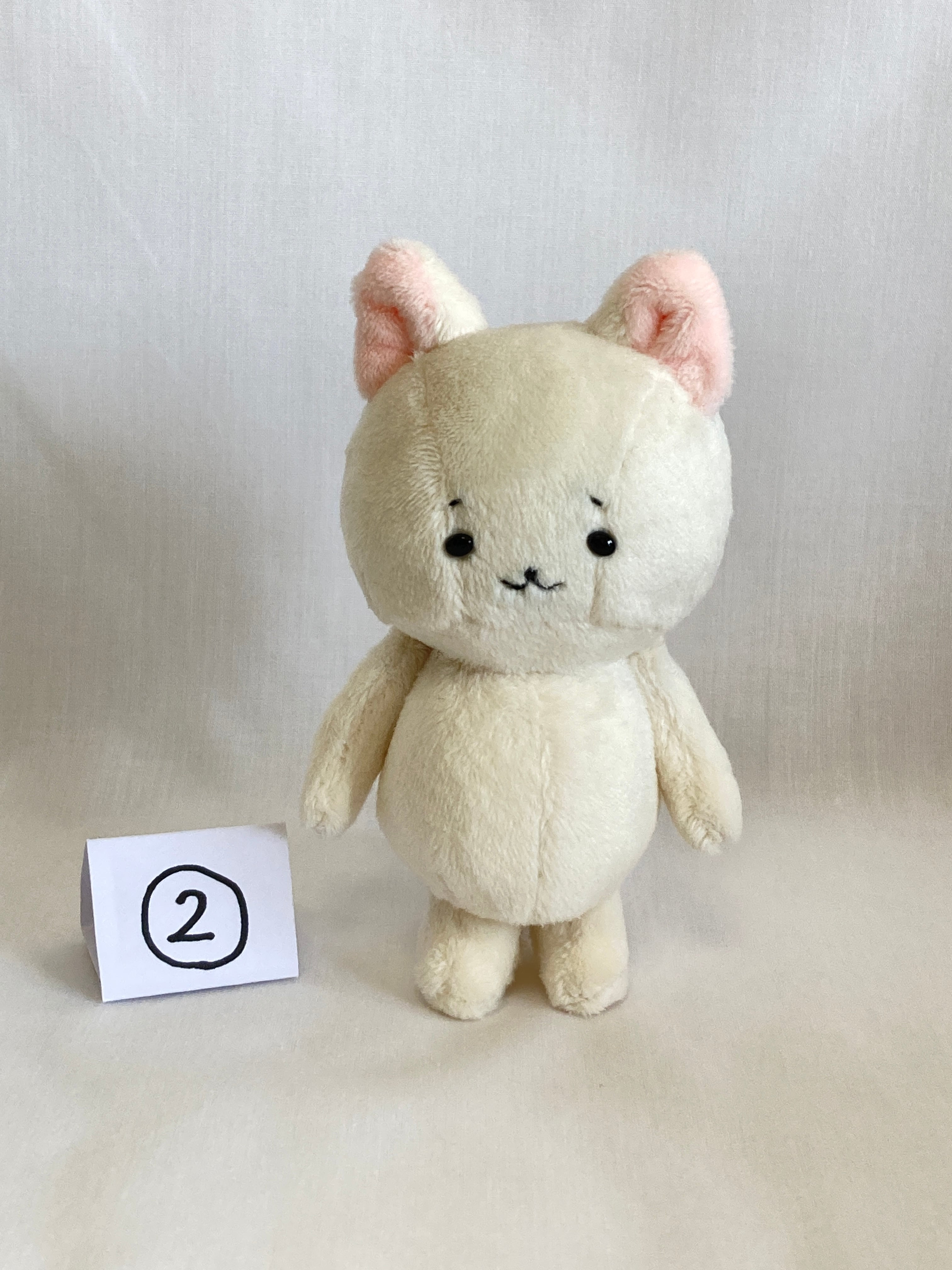 下膨れなねこちゃんです、服を着せられるタイプのぬいぐるみを作りたくて生まれました